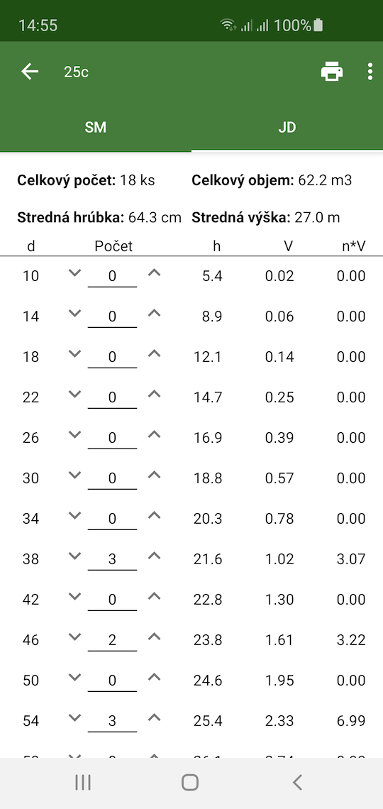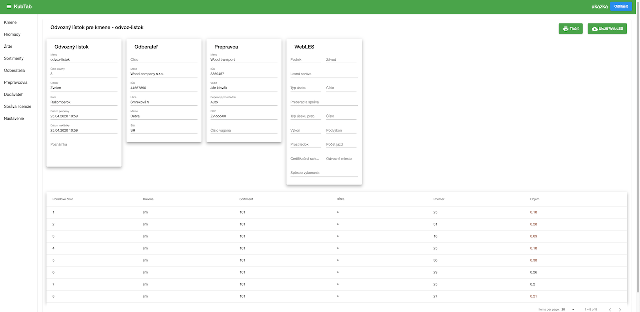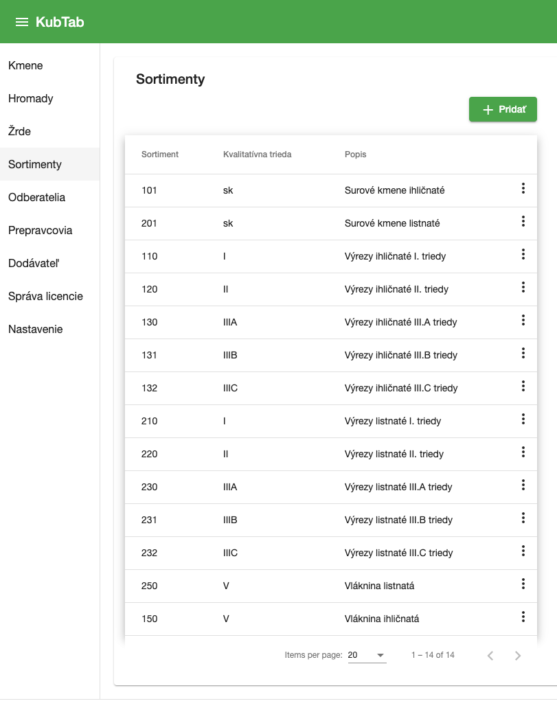 Podľa zadaných údajov vypočíta požadovaný objem dreva a ten následne triedi podľa drevín, kvalitatívnych a hrúbkových tried výrezov.